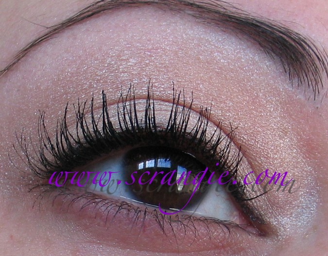 The left side has a little bit of Benefit RSVP Creaseless Cream Shadow just on the lid, Smashbox Artificial Light Luminizing Powder from lashline to browbone and in the inner corner, and a coat of Fusion Beauty LashFusion XL mascara. Right side has nothing.Different lighting: